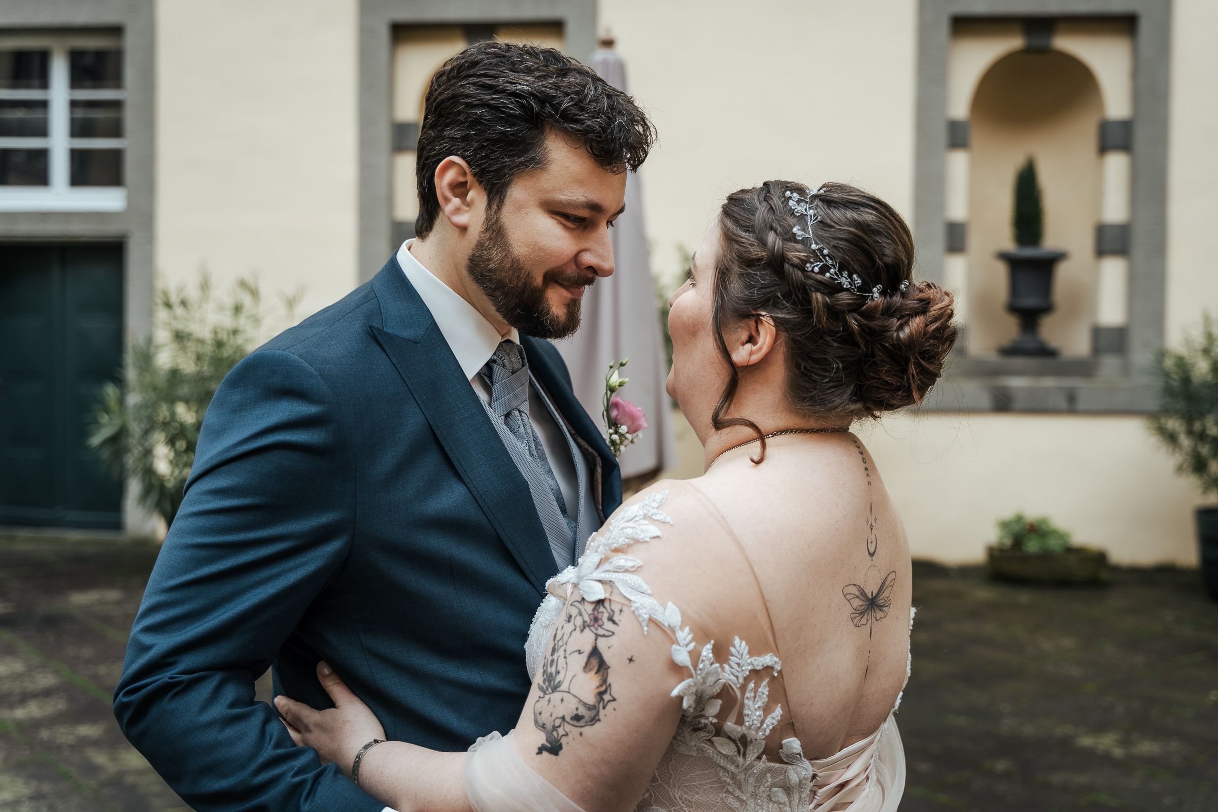 Die Hochzeit von Sara und Tim war ein wundervolles Beispiel dafür, wie persönlich, herzlich und emotional eine standesamtliche Trauung sein kann. In der traumhaften Kulisse der Burg Adendorf in der Gemeinde Wachtberg gaben sich die beiden im engsten Kreis das Ja-Wort – ein Tag voller echter Momente und großer Gefühle.
