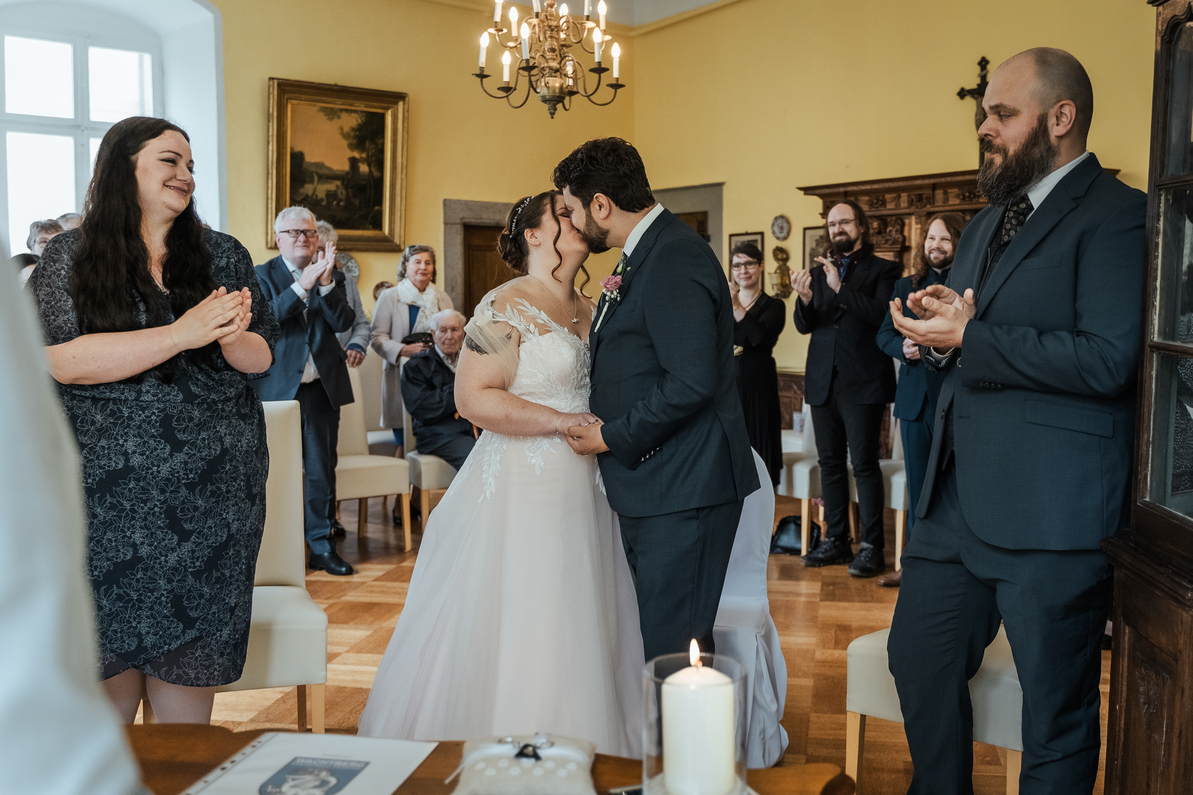 Doch damit war der Tag noch nicht zu Ende: Die engsten Freunde begleiteten Sara und Tim im Anschluss in ihre gemeinsame Wohnung, wo der Abend in gemütlicher Runde und ganz privatem Rahmen ausklang – ein perfekter Abschluss für einen rundum gelungenen Hochzeitstag.