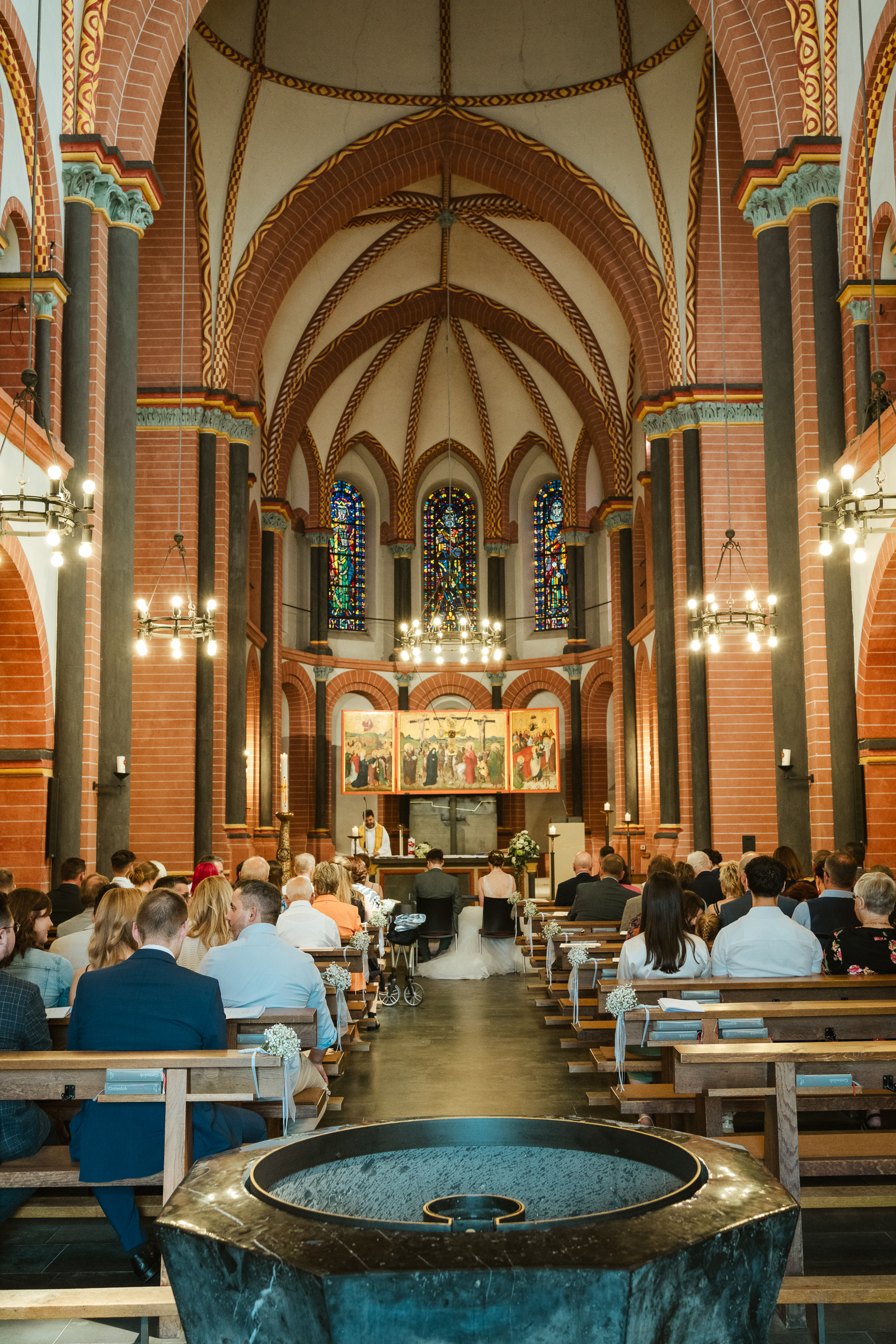 Die kirchliche Trauung fand in der katholischen Pfarrkirche St. Peter statt, deren festliche Architektur den idealen Rahmen für diese emotionale Zeremonie bot. Inmitten von Familie, Freunden und Wegbegleitern gaben sich Andrea und Jan das Ja-Wort – ein Augenblick voller Liebe, Stolz und tiefer Verbundenheit.