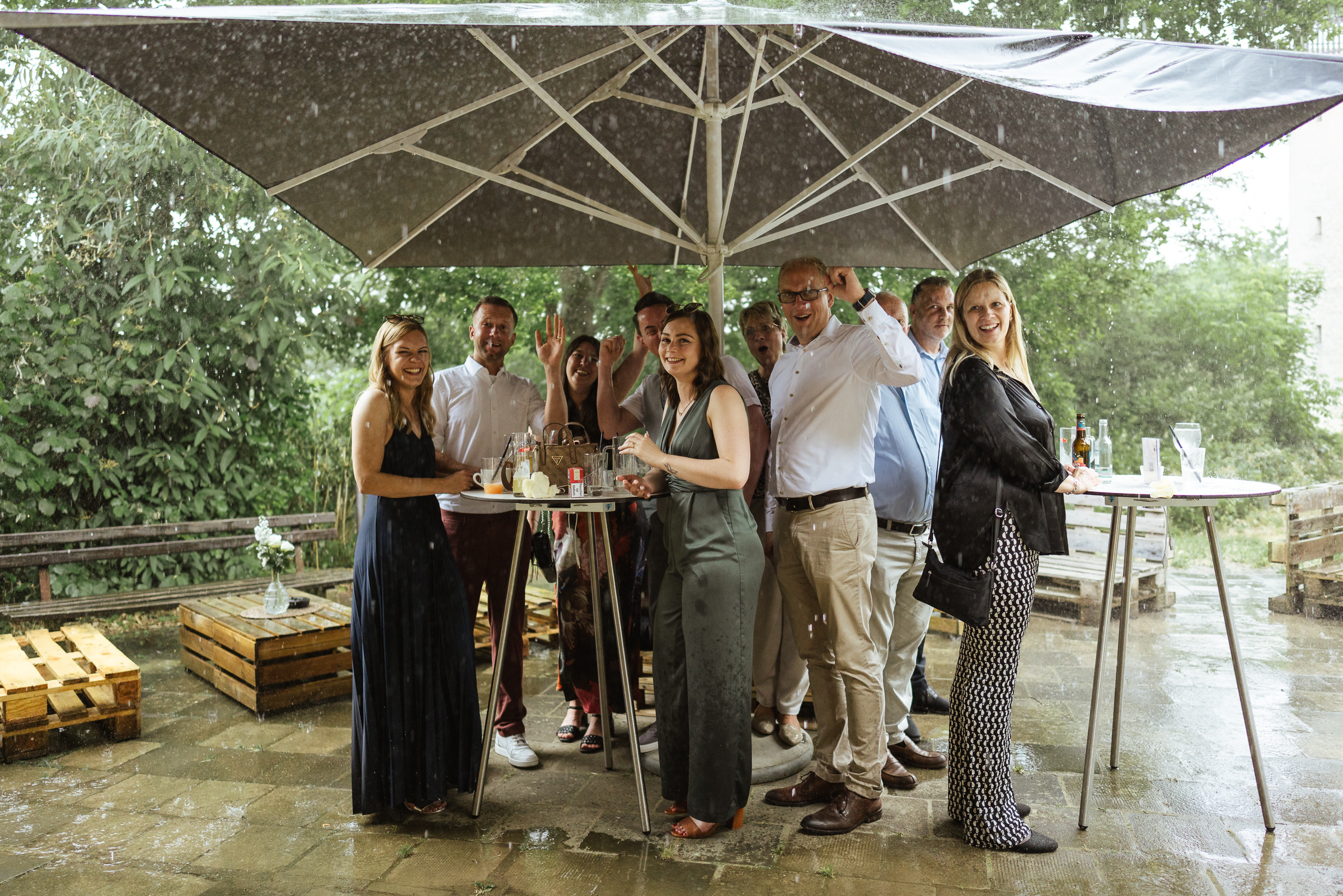 Auch einige kühlende Regenschauer konnten die Stimmung nicht trüben. Die Gesellschaft ließ sich die Feierlaune nicht nehmen und genoss leckeres Essen, guten Wein und ausgelassenen Tanz. Bis tief in die laue Sommernacht hinein wurde gelacht, gefeiert und das Leben zelebriert.