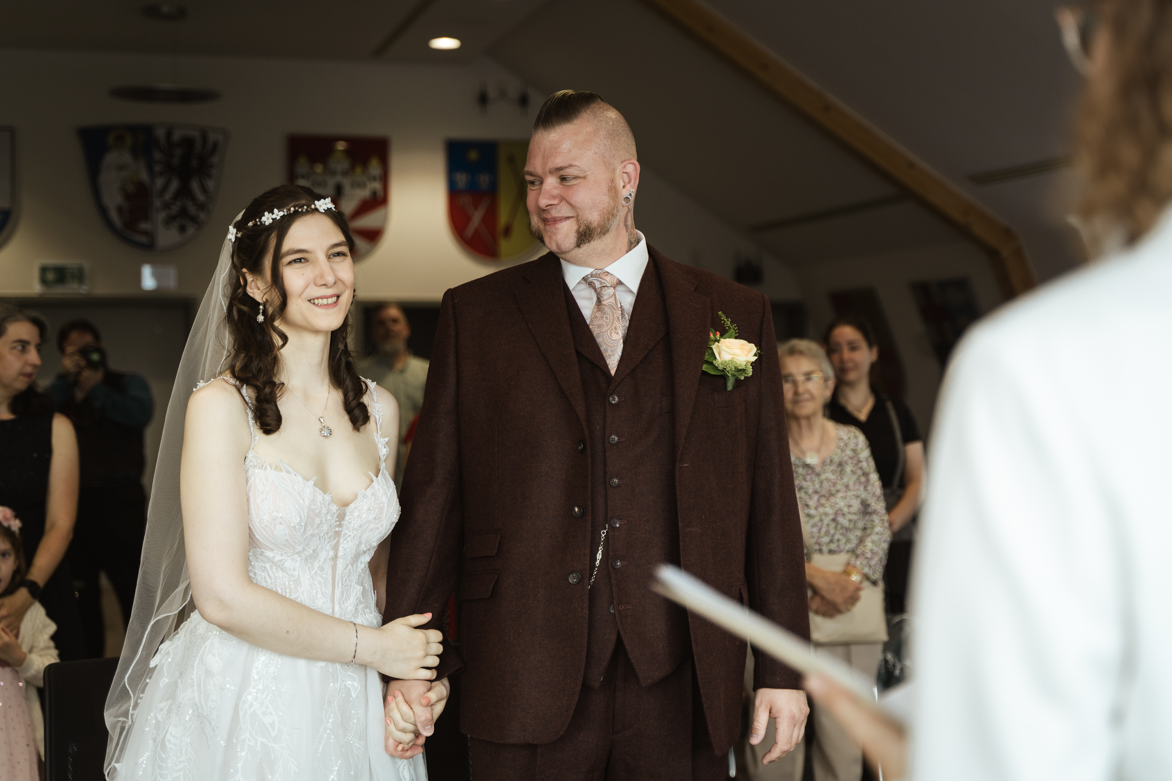Die beiden gaben sich im Standesamt der Verbandsgemeinde Brohltal in der Eifel das Ja-Wort. Schon während der Trauung war deutlich zu sehen, wie innig ihre Verbindung ist: ehrliche Emotionen, strahlende Augen und viele kleine Gesten, die diesen Moment so besonders gemacht haben.