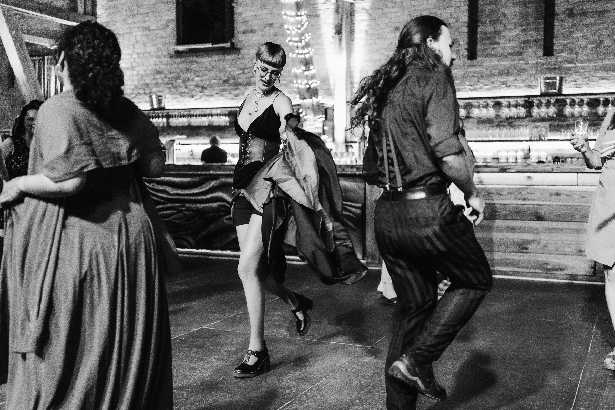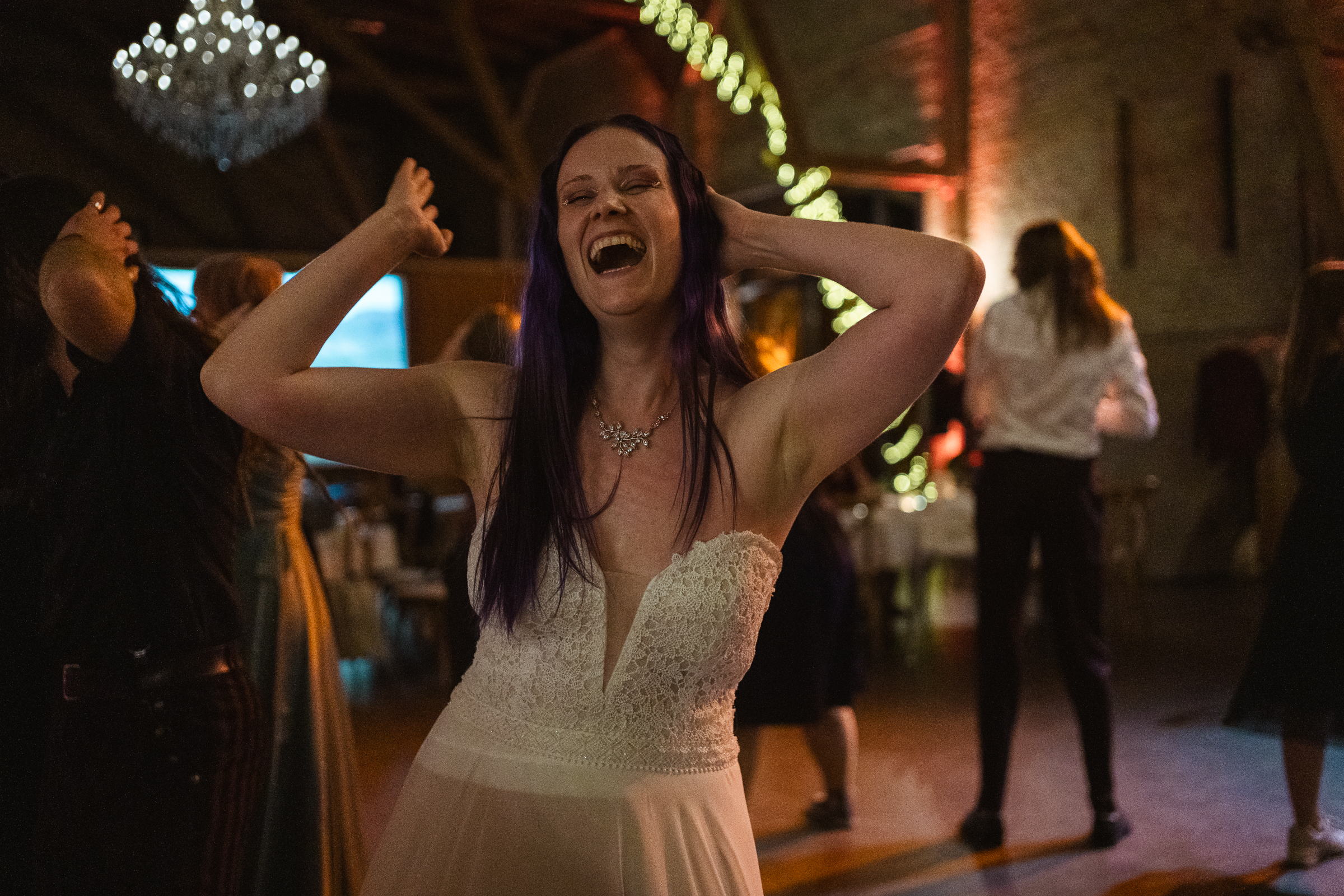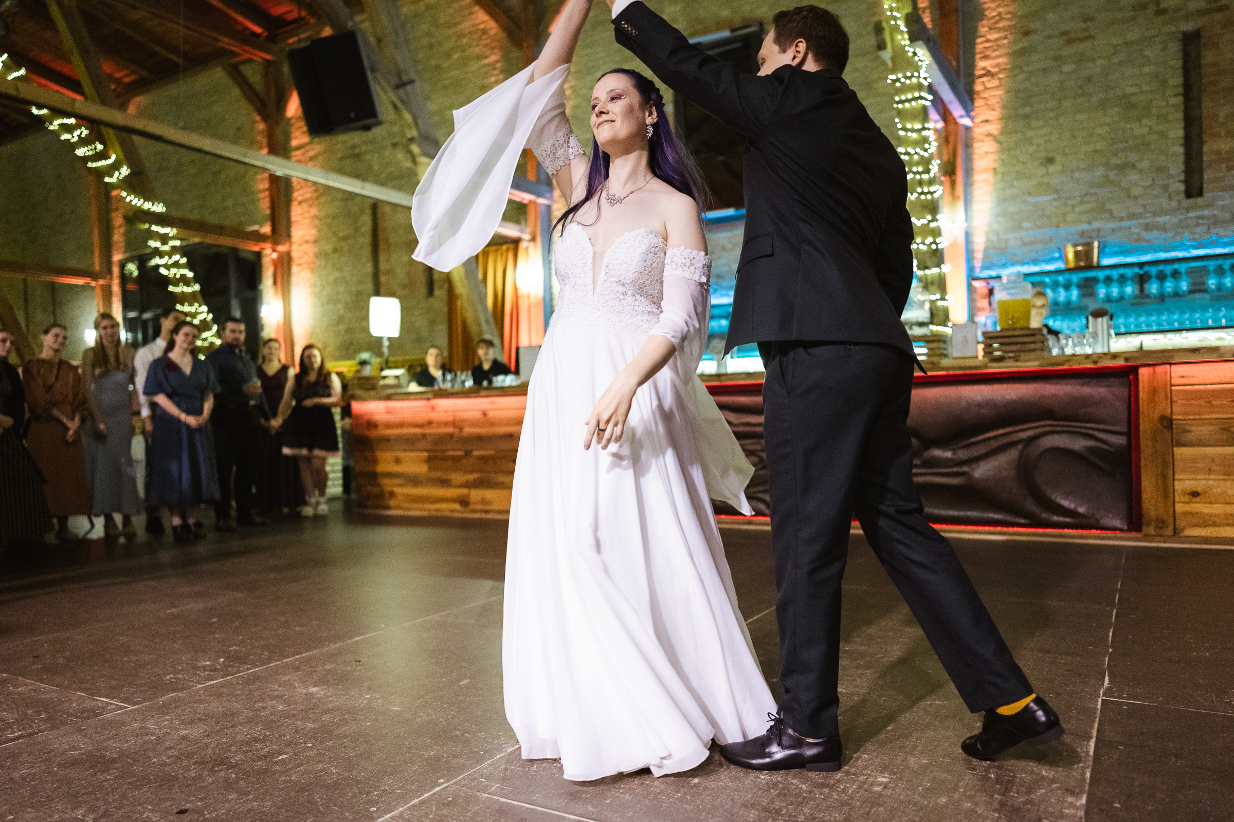 Nach dem Essen und einigen Spielen folgte ein weiterer emotionaler Höhepunkt: der Hochzeitstanz. Er bildete den Auftakt für eine ausgelassene Party, bei der viel und ausgiebig getanzt wurde – natürlich auch zu harter Rockmusik. Die Tanzfläche war voll, die Stimmung großartig und die Freude an diesem besonderen Tag allgegenwärtig.